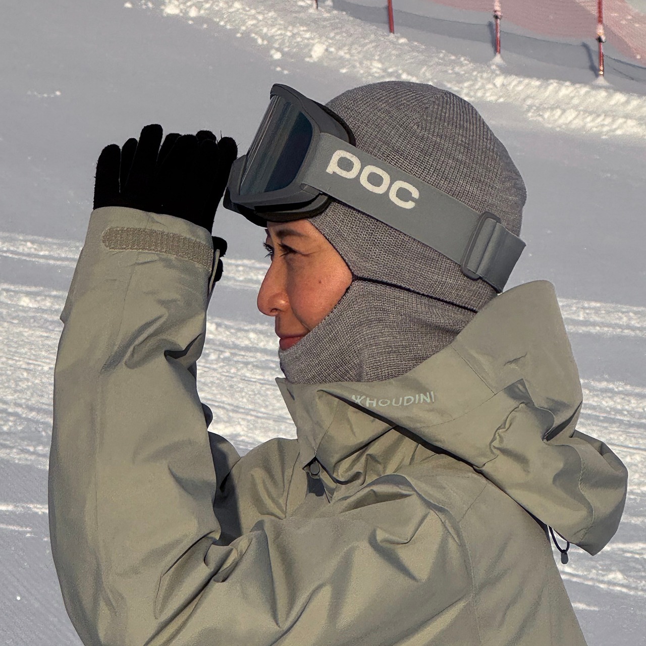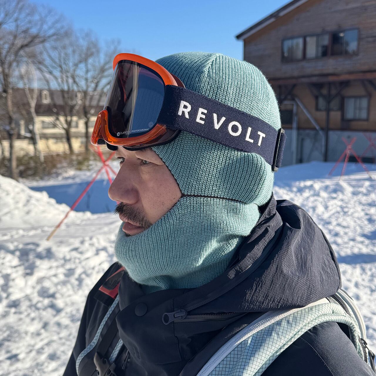 ライディング時はこれ1枚で暖かく、適度な風抜けがあり暑くなりすぎないのでそのままゴーグルを着用してスタイリッシュに。